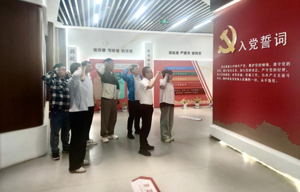 理論學(xué)習(xí)結(jié)束后,支部全體黨員前往江北新材料科技園黨建展館參觀學(xué)習(xí)并重溫入黨誓詞,進(jìn)一步以“學(xué)”明方向、以“行”見實(shí)效。