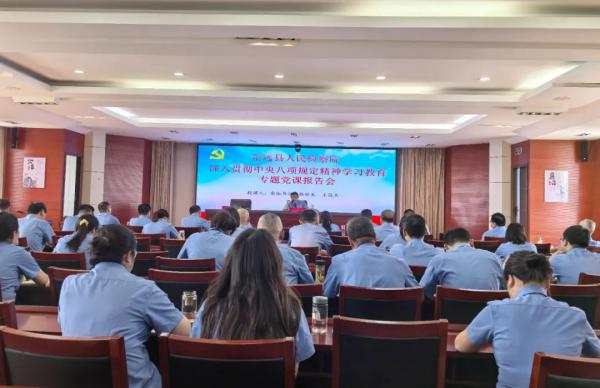 6月27日下午,王昌杰檢察長圍繞紀律作風建設、檢察履職實踐、司法為民宗旨等方面,以深入淺出的方式為全體干警講授深入貫徹中央八項規定精神學習教育專題黨課。他強調,要深學細悟八項規定精神,筑牢作風建設思想根基;要刀刃向內查擺問題,直面作風建設痛點堵點;要嚴實作風鍛造檢察鐵軍,推動工作提質增效。黨課內容豐富詳實,緊密聯系實際,既是對八項規定精神知識的輔導講座,也是一次能夠激發干警內心共鳴的思想教育,更是一堂發人深省的廉政警示課,教育引導全體黨員、干部深刻認識作風建設的重要性,進一步筑牢思想防線,深化自我革命,勇于擔當作為。
